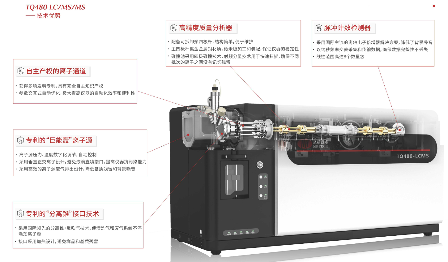 專利的“巨能轟”離子源具有超高的離子化效率,專利的分離錐接口技術(shù)確保極佳的離子轉(zhuǎn)移效率,軍工品質(zhì)的鉬鍍金四極桿和高精度離子通道保證離子優(yōu)秀的傳輸效率,離子檢測(cè)系統(tǒng)實(shí)現(xiàn)了信號(hào)高增益和極低的背景噪音,兩臺(tái)大抽速進(jìn)口分子渦輪泵提供了極低的真空度,這一切促成了TQ480極佳的靈敏度,大部分應(yīng)用試驗(yàn)都具有遠(yuǎn)低于pg級(jí)的檢出限。